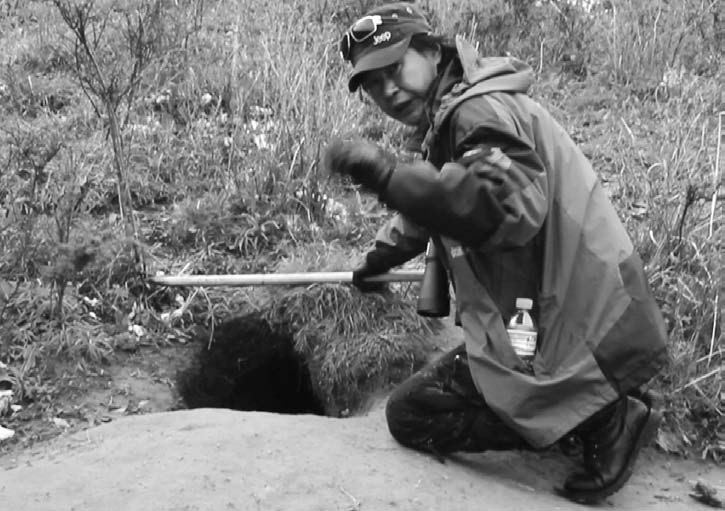 大约走了五十米,又是一个三平方米左右的沙土平台,周围一圈一米多深的灌木像城墙环绕着平台。我怕留下脚印,不敢踏上沙土平台,轻手轻脚绕到灌木丛外围的草坡上,踮着脚伸脖子望去,一个幽深的狼洞赫然显现,向斜下方延伸的洞口还有小狼攀爬的抓痕。我抬眼向山坡上看,还有好几处与之相连的逃生洞口都在灌木丛中若隐若现,除非走近,否则在灌木的掩护下,休想发现。