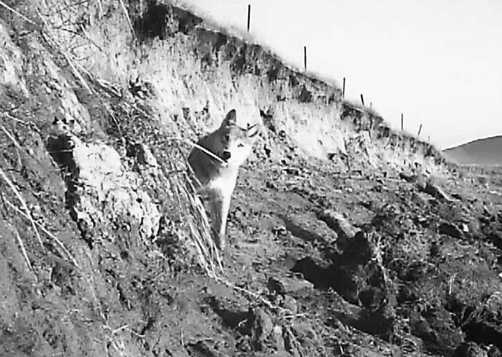视频停止了,摄像机拍摄时限只有一分钟,在这一分钟里辣妈轻松往返百余米的距离三次,最终是从哪里离开的,不知道。只知道在这个过程中她巧妙地绕过了我精心布置的五台“机关”。当她发现隐藏的镜头时,只有十分之一秒的定睛,立马走,毫不迟疑,绝不好奇!狼原本是相当好奇的动物,但她竟然克制住好奇的天性,她那一瞬间的眼神分明传递出这样的讯息——我不需要知道那是什么,反正是人的东西,是熟悉的路线中出现的危险异状,我必须离人越远越好。辣妈在狼山上就很讨厌我们的隐蔽摄像机,把两台机器都扔进了洞里。以至于后来,我们再没敢安装隐蔽摄像机在狼窝附近。