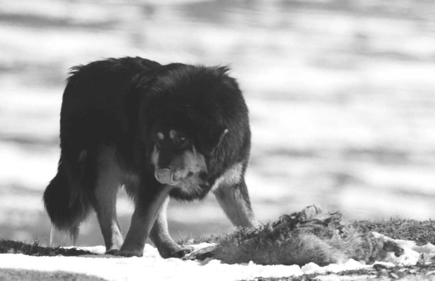才旦家的大藏狗天天吃糌粑汤,早就寡得慌了。他嗅闻草场上的枯骨残骸,回味着口蹄疫期间的肉味。现在还没入冬,狼群极少攻击牛羊。想指望狼群打冬粮还得等个把月,何况狼群嘴下留肉的机会少,如果发现得晚了,兀鹫一过更是寸肉不剩。求狼不如求己,那狗对着自家的羊群流下了哈喇子。