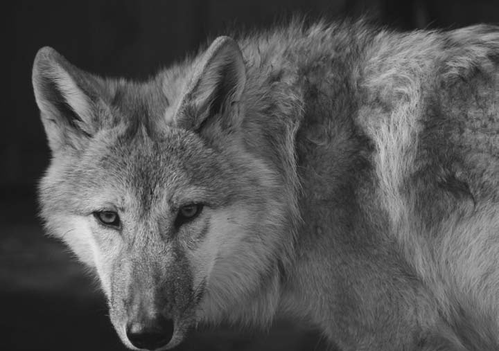 除了薄雪淡月,没有更多的光源,四对狼眼不像强光照射时那么明亮,只是暗绿暗绿地在我窗前游动,雪月之光把狼影的背部勾勒出一绺苍银色鬃毛。清冷的空气中裹挟着更加纯粹的气味分子,腥野的猛兽气息飘送过来。尽管明知道这么近的距离,狼群肯定早就嗅到我们的人味儿,但我还是本能地用袖筒挡住口鼻,生怕呼出的雾气更引起狼群的注意。