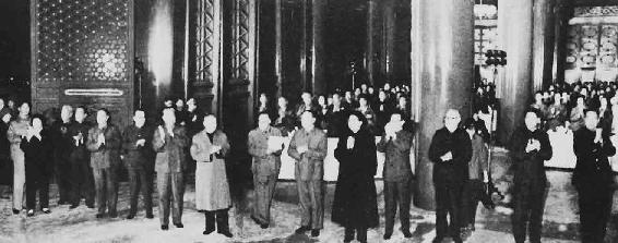7时整,当时中国政治舞台上的核心人物,依照极为严格的顺序,鱼贯步入天安门城楼上的大厅,工农兵学商各界代表纷纷起立致意。