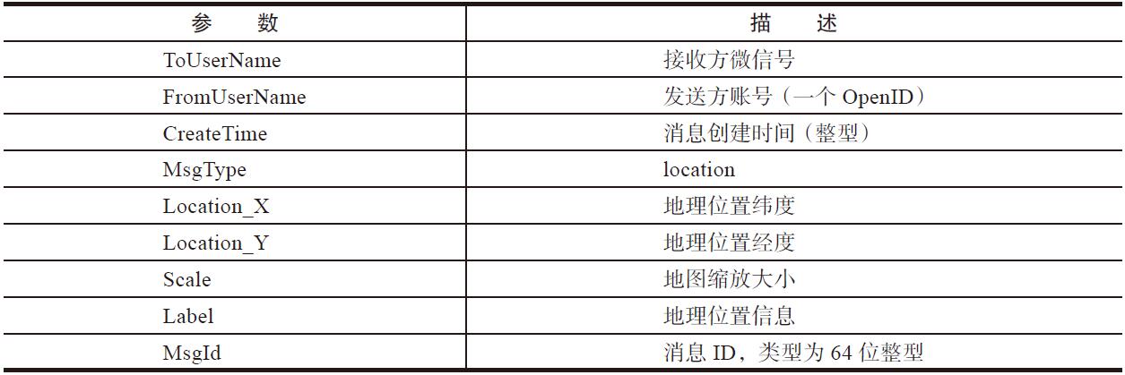 用户发送的地理位置消息的参数及描述如表4-5所示。
