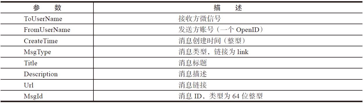 用户发送的链接消息的参数及描述如表4-6所示。