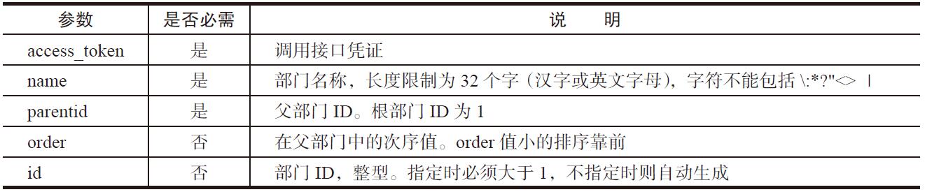 https:// qyapi.weixin.qq.com/cgi-bin/department/create?access_token=ACCESS_TOKEN