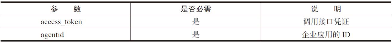 https:// qyapi.weixin.qq.com/cgi-bin/agent/get?access_token=ACCESS_TOKEN&agentid=AGENTID