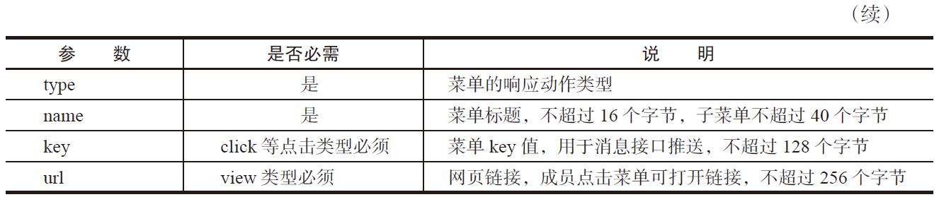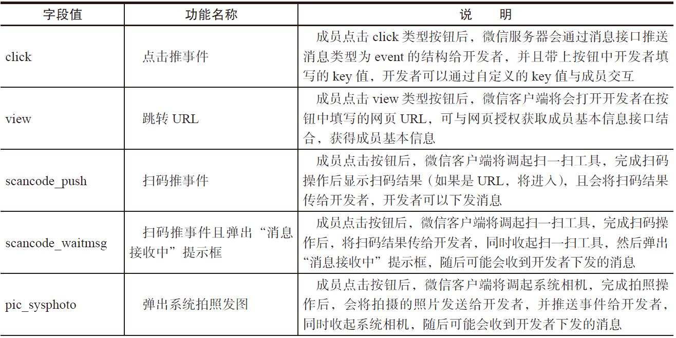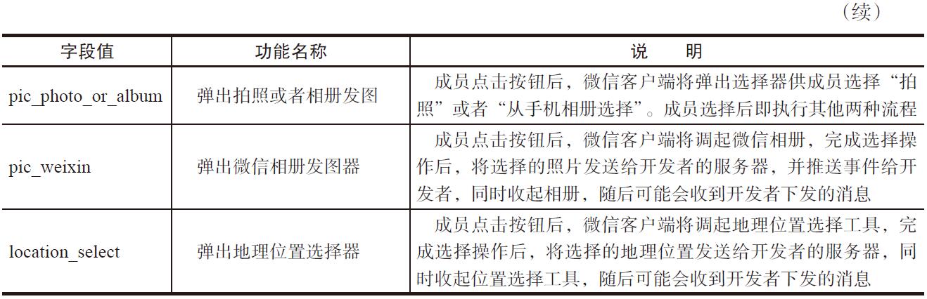 自定义菜单接口可实现多种类型的按钮,如表20-20所示。