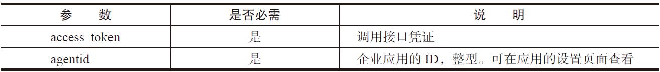 20.5.2 获取菜单列表 04-13Ctrl+D 收藏本站 关灯 护眼 小 中 大 繁 直达底部 获取菜单列表的接口如下。 https:// qyapi.weixin.qq.com/cgi-bin/menu/get?access_token=ACCESS_TOKEN&agentid=AGENTID 上述接口的参数说明如表20-22所示。 表20-22 获取菜单列表接口的参数说明 接口数据返回结果与菜单创建的参数一致。 上一章:上一章 下一章:下一章