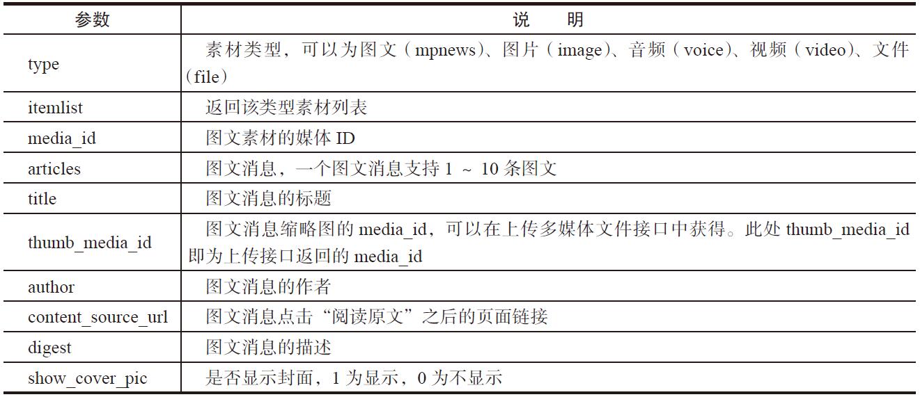 表20-32 获取素材列表接口返回参数说明
