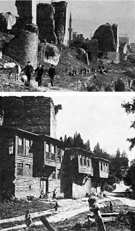 这些累人而混乱的漫步当中最感人的时刻,是在戈蒂耶瞥见拜占庭废墟穿过这些偏远的贫民区之时。戈蒂耶有力地表述城墙的厚度与耐久,它们的剧变,时间的裂缝与蹂躏:划过整座高塔的裂纹(从小也令我害怕),散落在塔底的破片(在戈蒂耶和我们的时代之间,1894年的大地震对城墙造成巨大破坏)。他描述裂缝中的草,绿叶柔化塔顶的无花果树,邻近地区的枯燥沉闷,这些地区及其破败房屋的沉寂。“殊难相信,这些死寂的城墙后头存在着活生生的城市!”戈蒂耶写道,“我相信世界上没有哪个地方比这条路更严峻、更忧伤,路长三里多,一端是废墟,另一端则是墓地。”