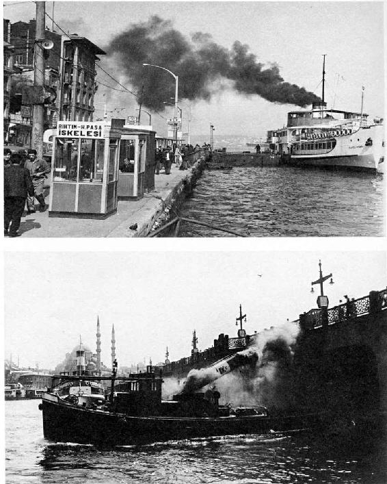19世纪中叶,汽船使海上旅行发生变革,加强了与欧洲各大城市的联系,让人得以短期造访伊斯坦布尔。不久,一些作家在报上发表的印象将塑造伊斯坦布尔的新概念,但这些汽船从一登场便给予城市一番新面目。一开始在“海利耶”名下做贸易、后改称“城市线”的公司成立,不久,博斯普鲁斯的每个村子都有了自己的停靠站,渡轮开始往来海峡,于是城市有了一丝欧洲气象(别忘了,法语里的“vapeur [蒸汽]”一词进入伊斯坦布尔的土耳其话和日常生活中,成为我们的“vapur[船]”)。渡轮带来的改变包括在博斯普鲁斯和金角湾停靠站周边形成的广场,以及这些村镇的迅速发展使它们不久成为市区的一部分(渡轮到来前,几乎没有道路连接这些村镇)。