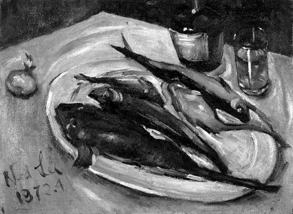 李文珍《餐桌上的鱼》 30cm×40cm 1972年