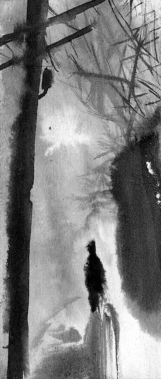 从现在看,上世纪七十年代我的画风经历了一个巨大的转变。我走过的道路就像由宋到元的中国绘画,从原先画师们的写实与具象,改变为文人一己的抒情与写意。我的画不再是给人看的了,而是个人郁结着的心性的一种排遣。实际上,它与我的秘密写作的内心是一致的,只不过绘画多是借景生情,比赤裸裸的白纸黑字更安全罢了。