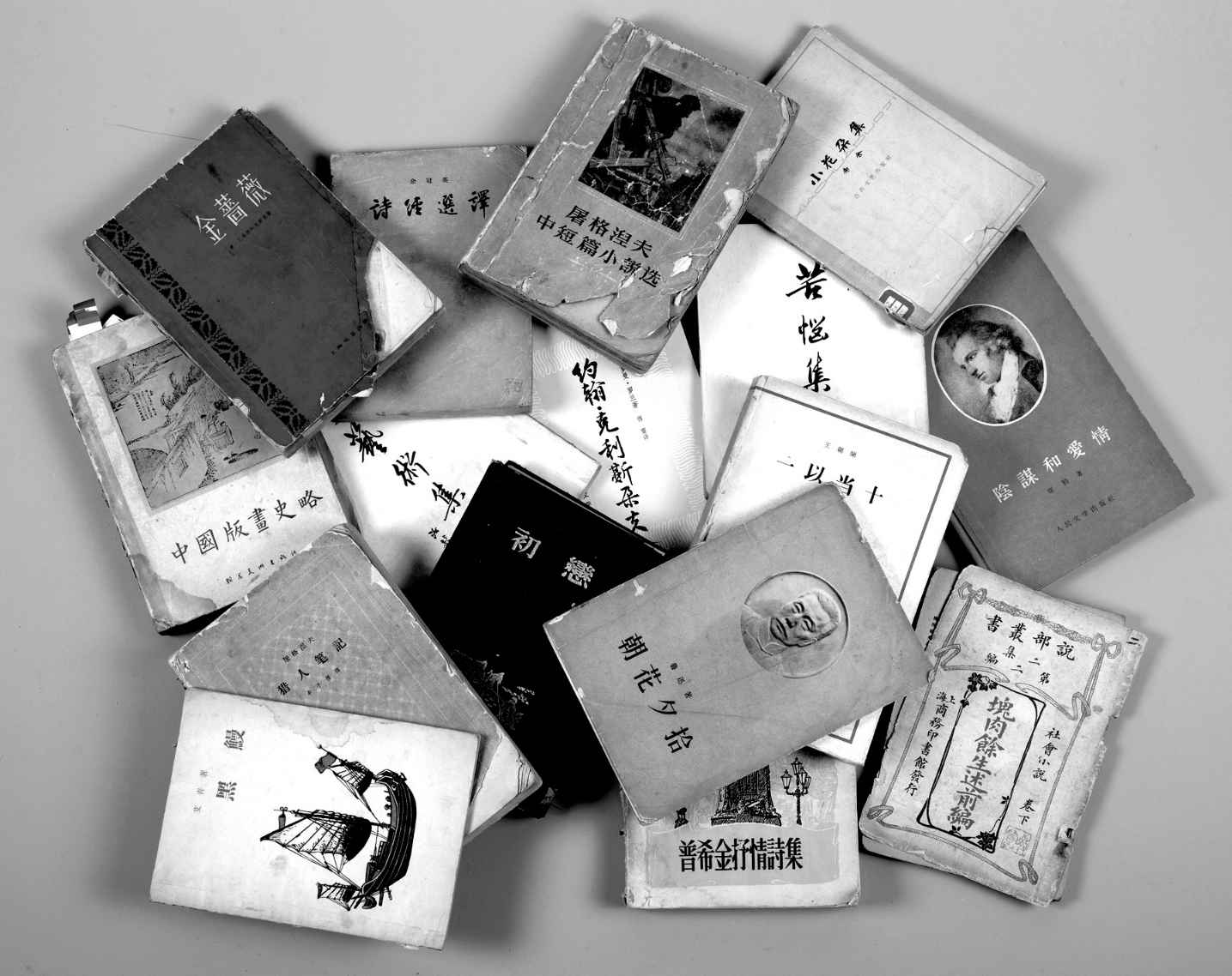 那时我有太多的时间,可以回到“文革”前最痴迷的生活——读书与画画。我有一批宝贵的财富,就是从抄家废墟里捡拾而来的图书。尽管许多书的封面都被扯去了,现在有时间把它们重新修补,装潢。我从一件旧衣服上取下几块布,给一些珍贵却残破的名著装上布面的书衣。比如:《浮士德》《高老头》《呼啸山庄》《生死存亡的时代》等等,我的手工制作十分细致。布料不够用了,就配上各类好看的纸,尽量做得可意。《欧根·奥涅金》的封面就是取自一个破旧的带铁边的硬纸夹子。这些装帧过的书放在一起十分漂亮,别看我只有一百多本书,在别人眼里,我已是叫人艳羡的富翁,它们是我“文革”中重要的精神食粮。有些书虽然让我修好,却又被我看坏。