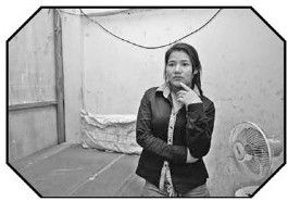一个柬埔寨少女站在她工作的房间前。她曾遭绑架并被卖入妓院中。