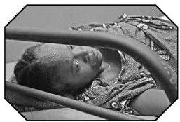 我们其实是无意间来到这家医院的,既然来了,就顺道进去问了一下这个地区的孕产妇医疗护理情况。在听完皮皮医生“明智”地评估该区的情况后,我们在一间闲置的病房里看到了普鲁登斯。她的家人告诉我们,她在那里已经躺了三天,没有受到任何治疗——后来皮皮医生愤慨地跟我们说,只有两天。她到医院不久,胎儿就死了,此刻胎尸正在慢慢地腐烂并毒害着普鲁登斯。