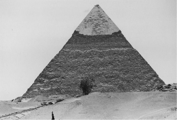 对大金字塔所进行的极其详尽的测量表明,与修建这座金字塔相关的一切事物都是有目的的。早前,考察者W.M.弗林德斯•帕特里(W.M.Flinders Petrie)发现,国王墓室里的石棺体积为1166.4公升(约308加仑)。其外部体积恰好是其内部体积的2倍:2332.8公升(约616加仑)。这清楚表明修建者掌握了先进的技术和数学知识。精确测量了大金字塔之后发现,其正北底部长230.2506米(755.43英尺),正西底部长230.35869米(755.77英尺),正南底部长230.45318米(756.08英尺),正东底部长230.39222米(755.88英尺)。偏离标准正方形的最大偏差为0.09812米(0.80英尺),更精确地说,是每米偏差0.0004厘米,每英尺偏差0.0015英寸。金字塔四角的90°直角偏差为0°00'02"(西北方向),0°03'02"(东北方向),0°3'33"(东南方向),0°0'33"(西南方向)——太精确了!金字塔的坡度为51°,也就是熟知的“完美”角度,因为它正好体现了圆周率(pi=3.1415)和黄金分割数值(phi=0.618)之间的数学比——据说,这种比例是古埃及人数学知识体系中所没有的,因为“只有”希腊人才了解这种比例。但是,这种比例在整个金字塔群中都得到了淋漓尽致的体现。这种精确性让人吃惊,它远远超过了现代建筑的成就。毫无疑问,早在1859年的约翰•泰勒(John Taylor)时代,人们就认为是非埃及的入侵者——受神启发的种族——建造了金字塔。不过马克•莱纳(Mark Lehner)在著作《完整的金字塔》(The Complete Pyramids)(1997)中大胆提出了一个问题,即“为何会存在如此非凡的精确性呢?”他认为我们是无法解答这个问题的。