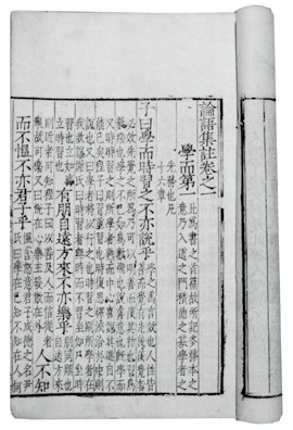 《论语》是孔子弟子们记的。这部书不但显示一个伟大的人格——孔子,并且让读者学习许多做学问做人的节目:如“君子”、“仁”、“忠恕”,如“时习”、“阙疑”、“好古”、“隅反”、“择善”、“困学”等,都是可以终身应用的。《孟子》据说是孟子本人和弟子公孙丑、万章等共同编定的。书中说“仁”兼说“义”,分辨“义”、“利”甚严;而辩“性善”,教人求“放心”,影响更大。又说到“养浩然之气”,那“至大至刚”、“配义与道”的“浩然之气”[9],这是修养的最高境界,所谓天人相通的哲理。书中攻击杨朱、墨翟两派,辞锋咄咄逼人。这在儒家叫作攻异端,功劳是很大的。孟子生在战国时代,他不免“好辩”,他自己也觉得的[10];他的话流露着“英气”,“有圭角”,和孔子的温润是不同的。所以儒家只称为“亚圣”,次于孔子一等[11]。《孟子》有东汉的赵岐注。《论语》有孔安国、马融、郑玄诸家注,却都已残佚,只零星的见于魏何晏的《集解》里。汉儒注经,多以训诂名物为重;但《论》、《孟》词意显明,所以只解释文句,推阐义理而止。魏、晋以来,玄谈大盛,孔子已经道家化;解《论语》的也多参入玄谈,参入当时的道家哲学。这些后来却都不流行了。到了朱子,给《论》、《孟》作注,虽说融会各家,其实也用他自己的哲学作架子。他注《学》、《庸》,更显然如此。他的哲学切于世用,所以一般人接受了,将他解释的孔子当作真的孔子。