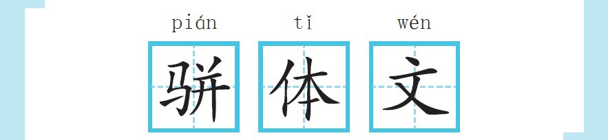 骈体文也称骈文、骈俪文或骈偶文,和“散体文”相对。因为常常采用四字、六字句,所以也称为“四六文”或“骈四俪六”。全篇文章多由对偶句构成,除少数散句外,都可以分为上下联,对仗十分工整。在声韵上,则讲究运用平仄,韵律和谐;修辞上注重藻饰和用典。