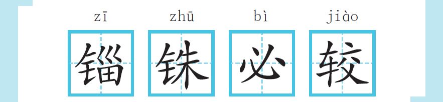 “铢”不能写成“珍珠”的“珠”。“较”是计较的意思,不能写成“锱铢必究”。