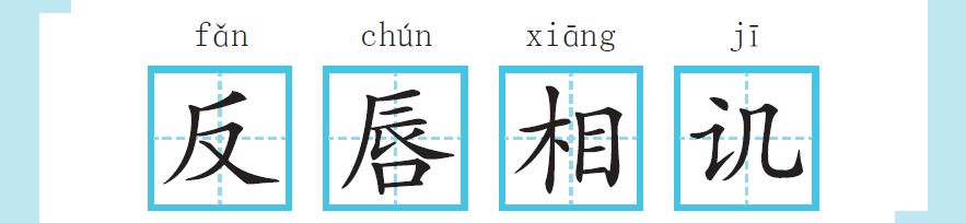 因为在古书中“反”和“返”常常混用,所以要特别注意不要把“反唇相讥”的“反”错写成“返”。“讥”是讥讽的意思,注意不要写成“叽”。