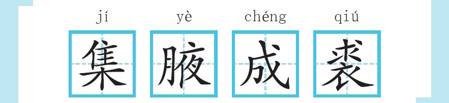 腋:腋下,指狐狸腋下的皮毛;裘:皮衣。狐狸腋下的皮毛虽小,但聚集起来就能制成皮衣,比喻积少成多。