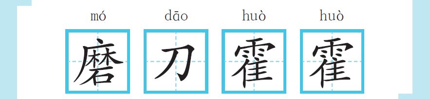 霍霍:磨刀的声音。原指响亮地磨刀,准备宰杀(牲畜等)。现用以形容敌人在加紧准备杀人或发动战争。