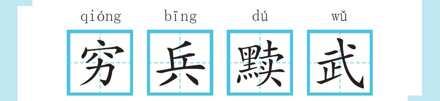 穷兵,用尽全部兵力。“黩”从黑,卖声。《说文解字》解释为“握持垢也”,本义是污浊之意。作为动词时,有滥用的意思。“黩武”便指轻率地滥用武力。