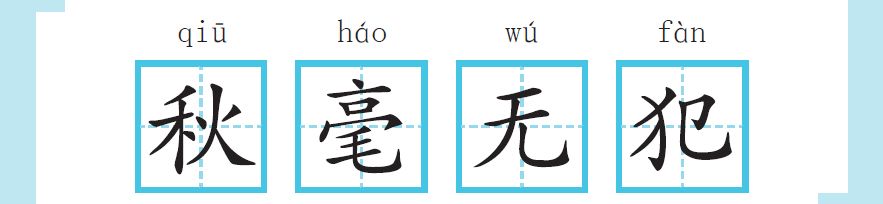 “秋毫”是指鸟兽秋后新长的细毛,比喻极其细微的东西。《史记》的《项羽本纪》和《淮阴侯列传》里都表述了和“秋毫无犯”相近的内容,但前者的说法是“秋毫不敢有所近”,后者的说法则是“秋毫无所害”。范晔在《后汉书·岑彭传》里有“持军整齐,秋毫无犯”的句子。古代典籍中,“秋毫无犯”也作“秋毫不犯”,如李白在《永王东巡歌》中有“秋毫不犯三吴悦,春日遥看五色光”的诗句。“秋毫无犯”也用来形容为人正派清廉,如岳伯川《吕洞宾度铁拐李岳》第二折中有“老夫一生公廉正直,与人秋毫无犯”的语句。