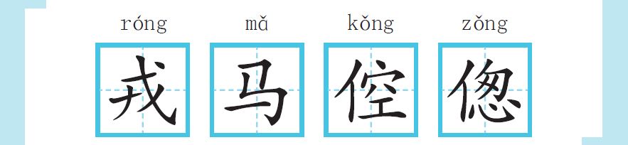 “倥偬”不要读作kōng cōng,“戎”不能错写为“绒”。“绒”为绞丝旁,本义是鸟兽上的柔毛,一般用于绒线、绒 布等。