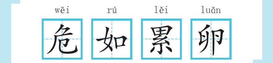 原义为将鸡蛋摞起来,鸡蛋随时都有可能被摔碎,形容形势极其危险,如同摞起来的蛋,随时都有倒下来的可能。