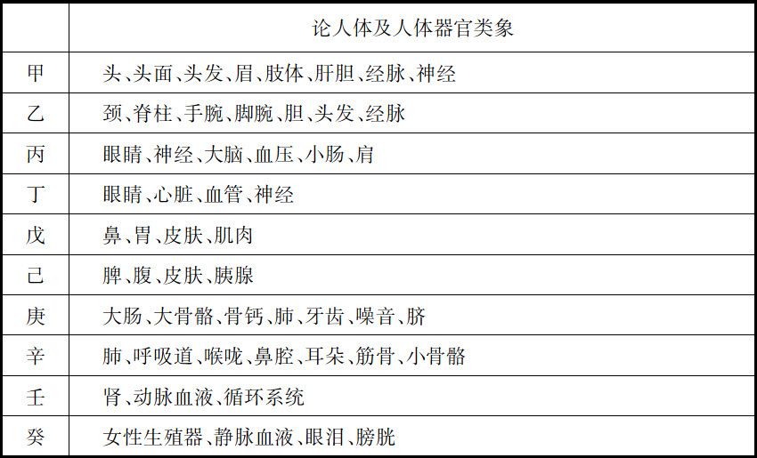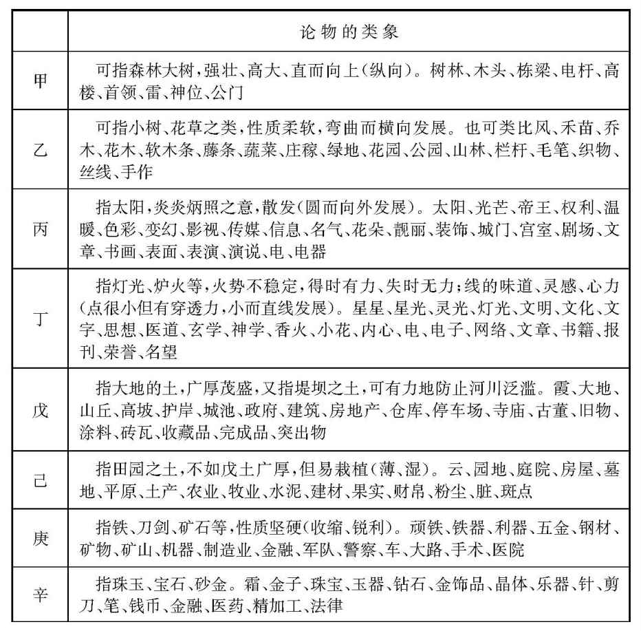 另列举一些天干类象,以激发读者建立在十天干基本特性基础上的想象力。