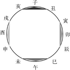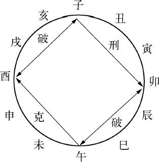 金水一派,木火一派。破是这两派中的将星与将星之间的不和谐。酉和子,卯和午,谁也不服谁。破有破损、残缺的意思。见图14: