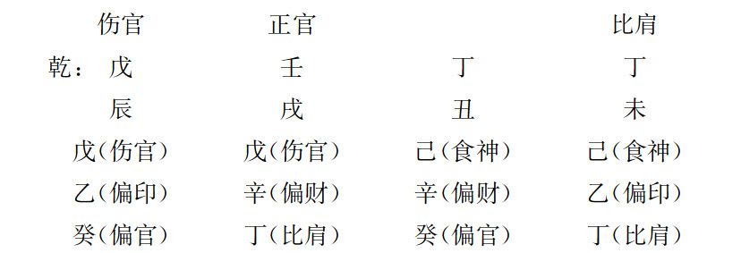 《西游记》中的这四个人说的是西天取经,那么两个乾卦的亥就是主角。唐僧名字表达的意向在亥里的甲木,是印,代表书,也代表贵人。悟空名字表达的意向在亥里的壬水,是官,也代表智慧和变化。由于特定事件西天取经的原因,最重要的领导就是唐僧了。猪八戒名字表达的意向在于未中的己土,沙和尚名字表达的意向在于卯木的煞星。