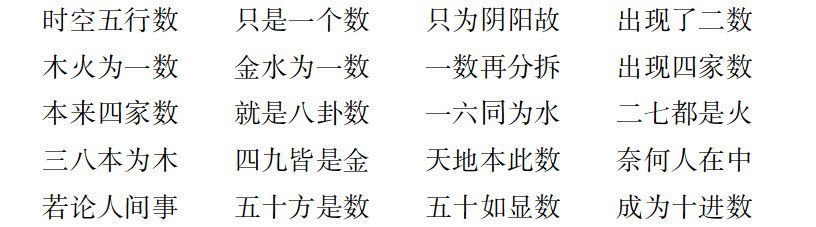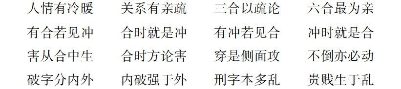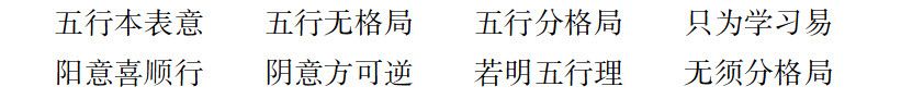 笔者刻苦钻研古圣先贤流芳百世的阴阳五行学,融合祖传五行技艺,自排阴阳五行口诀,以示自我对研习阴阳五行的总结,供读者共享。 一、法无定法、法外无法 二、向实求虚、心有定无 三、阳以顺取、阴可逆行 四、大运、流年 五、强弱、平衡 六、年、月、日、时 七、五行结构 八、论吉凶 九、论地支关系 十、论天干关系 十一、十二长生宫 十二、合化 十三、五行之数