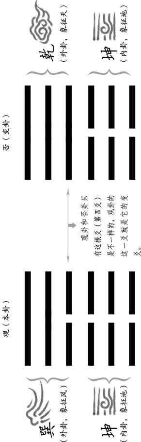 还记得晋献公请史苏给伯姬算的那卦吧?那一卦叫做“归妹之睽”,意思是:本卦归妹卦变成了变卦睽卦。现在这个“观之否”也是一样,观卦变成了否卦,观卦是本卦,否卦是变卦。