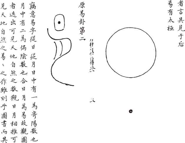图37 一个圆圈,这恐怕是最简单的太极图了。左边那张图是说“易”字的来历,上边是日,下边是月,这也是一桩众说纷纭的无头公案。《勿轩易学启蒙图传通义》[宋]熊禾述 影印国家图书馆藏清抄本