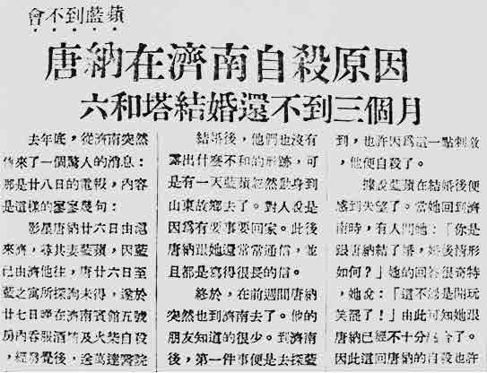 唐纳自杀于济南,消息传出,轰动了京、沪、鲁的报刊。