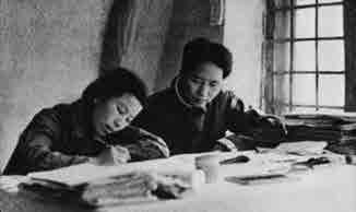 爸爸娶江青时,45岁,那时江青24岁。婚后不久,江青从鲁艺调到了爸爸的身边,任军委档案秘书。听爸爸说,他们从凤凰山搬到了杨家岭,住在三孔新窑里。窑洞在山脚下,砌上了石头,刷上了白灰。窗门是木制的,糊上纸,可透进光线。门外有一小块碾过的地,摆着简单的桌子、石凳。三间房分别为起居室、爸爸书房兼卧室、江青卧室。地上铺砖,桌椅是木料的。房子里没有自来水也没有电灯。