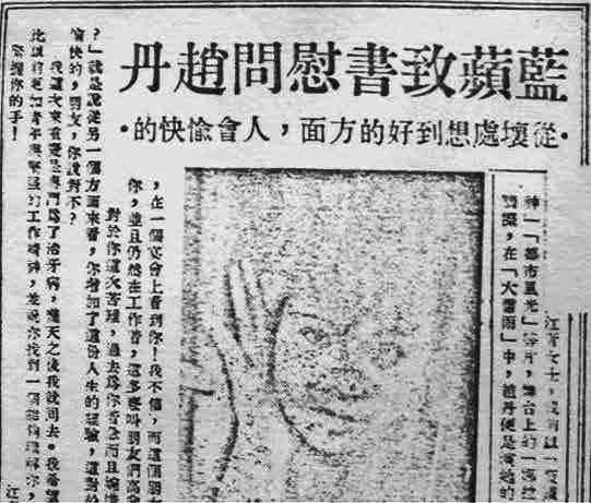 ■ 1946年已经成为江青的蓝苹致函赵丹(刊于《时事新报》)