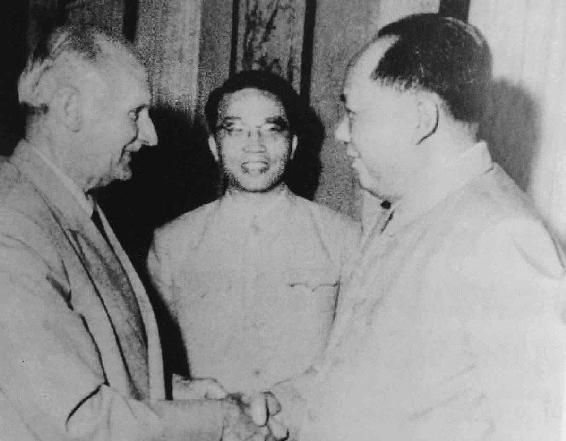 1962年柯庆施(中)陪同毛泽东会见蒙哥马利(左一)
