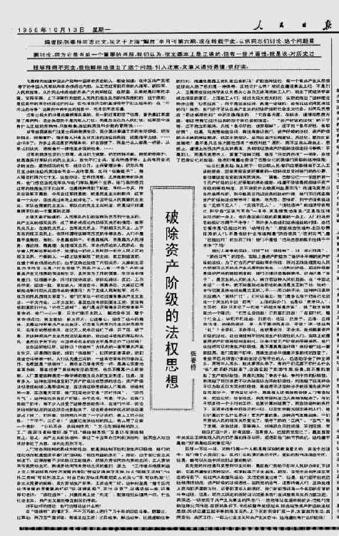 张春桥的“成名作”《破除资产阶级的法权思想》1958年10月13日在《人民日报》刊发。