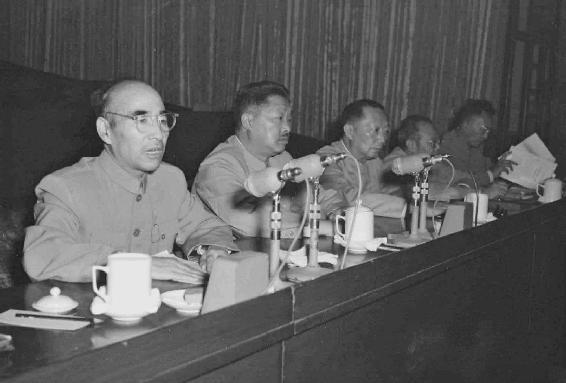 1959年9月15日举行的军委扩大会上,林彪(左一)被任命为军委常务副主席兼国防部部长,主管军委的日常工作。(孟昭瑞 摄)