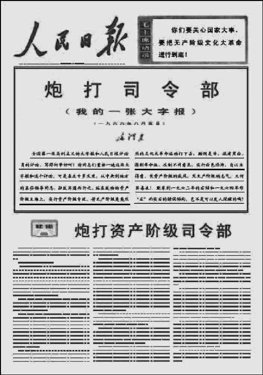 毛泽东所写的《炮打司令部——我的一张大字报》,是1966年8月5日写的。最初,他写在一份1966年6月2日的《北京日报》上。那天的《北京日报》头版,转载了《人民日报》社论《横扫一切牛鬼蛇神》。毛泽东随手在社论左边的空白处,写了那张“大字报”(其实是“小字报”),无标题,末尾署“8月5日”。后来由毛泽东秘书徐业夫誊抄,毛泽东又作了若干修改,加上了标题。
