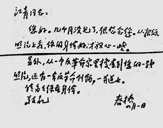 ■ 张春桥写给江青的信