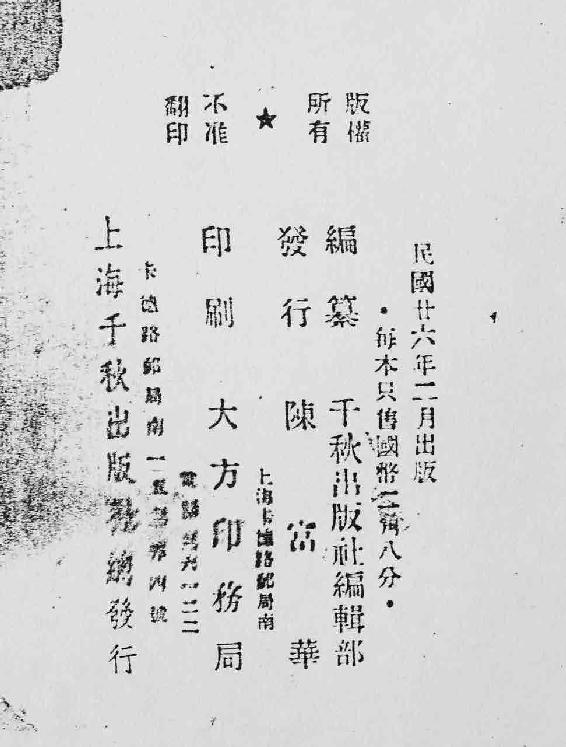 ■ 《鲁迅先生轶事》封面■ 《鲁迅先生轶事》版权页 鲁迅先生在《三月的租界》里批判的是狄克,《鲁迅先生轶事》一书说《三月的租界》批判的是张春桥,不言而喻:狄克=张春桥!