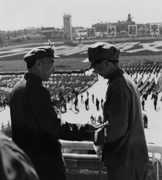 ■ 1966年10月1日,江青与林彪相见甚欢。(孟昭瑞 摄)