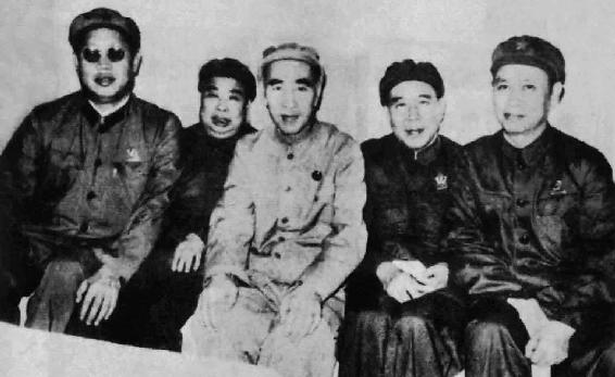 中南组。李作鹏(中国人民解放军副总参谋长兼海军第一政委)戴着一副墨镜,附和着叶群: