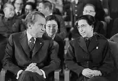 晚6时30分,江青自说自话来了,要求会见尼克松夫妇。