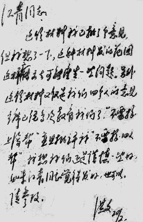这份材料我已批了个意见,但我想了一下,这种材料发的范围这样广,传出去可能产生一些问题。另外这份材料仅仅是我们四个人的意见,主席已经多次教育我们了,“不要搞上海帮”,并且批评我“不要搞四人帮”,我想我们还是谨慎一些好,如果江青同志觉得发好,也可以。请参考。