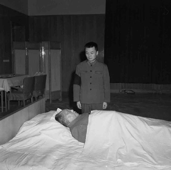 毛远新在毛泽东遗体前(杜修贤 摄)
